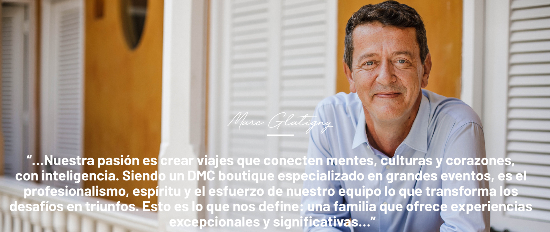 “…Nuestra pasión es crear viajes que conecten mentes, culturas y corazones, con inteligencia. Siendo un DMC boutique especializado en grandes eventos, es el profesionalismo, espíritu y el esfuerzo de nuestro equipo lo que transforma los desafíos en triunfos. Esto es lo que nos define: una familia que ofrece experiencias excepcionales y significativas…”